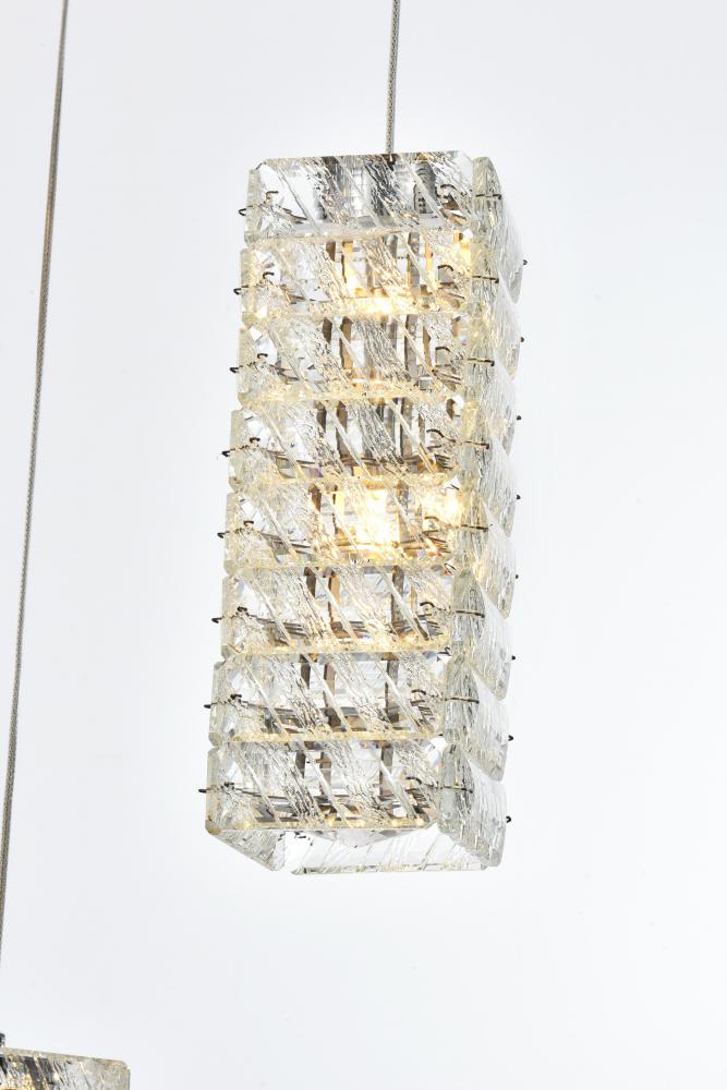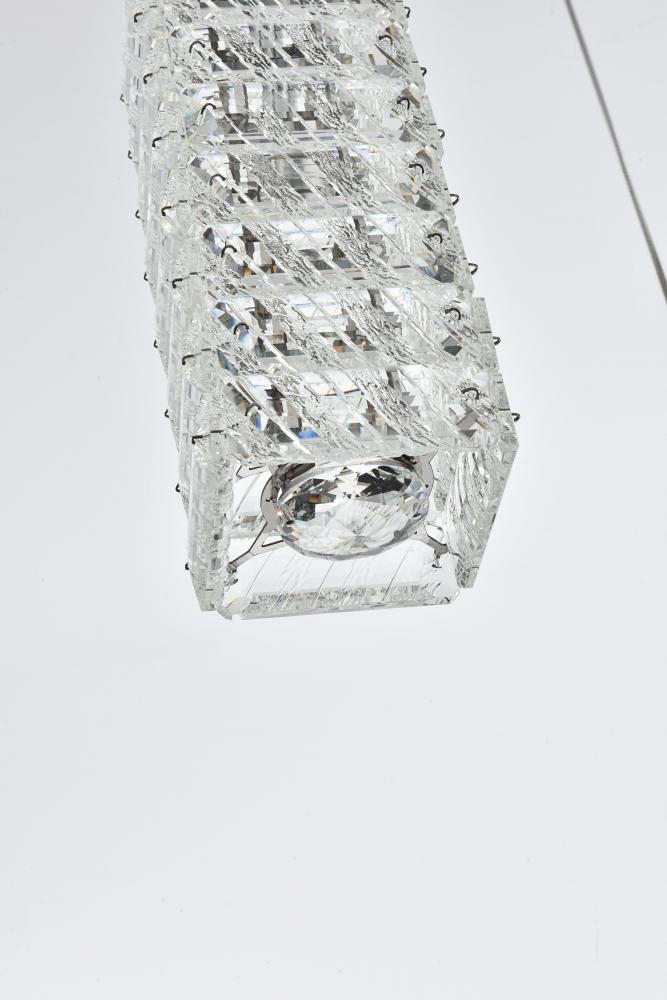 Elevate the ambiance of your space with this exquisite Crystal LED Pendant Light. Featuring a sleek four-sided rectangular shape, this pendant is adorned with clear crystals that resemble elegantly stacked ice. The addition of a round crystal diffuser at the bottom enhances the light's radiance, making it a focal point in any room. Transform your home with the Crystal LED Pendant Light, combining modern design with high functionality. Its sophisticated crystal design, adjustable lighting, and customizable hanging configurations make it a perfect addition to any contemporary space. Illuminate your home with style and elegance today.