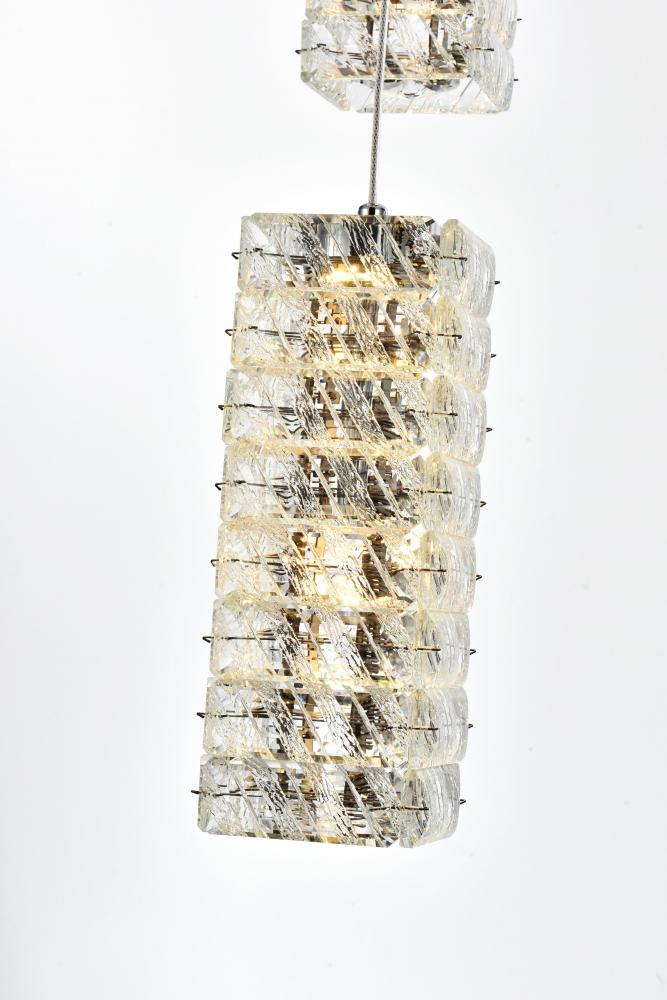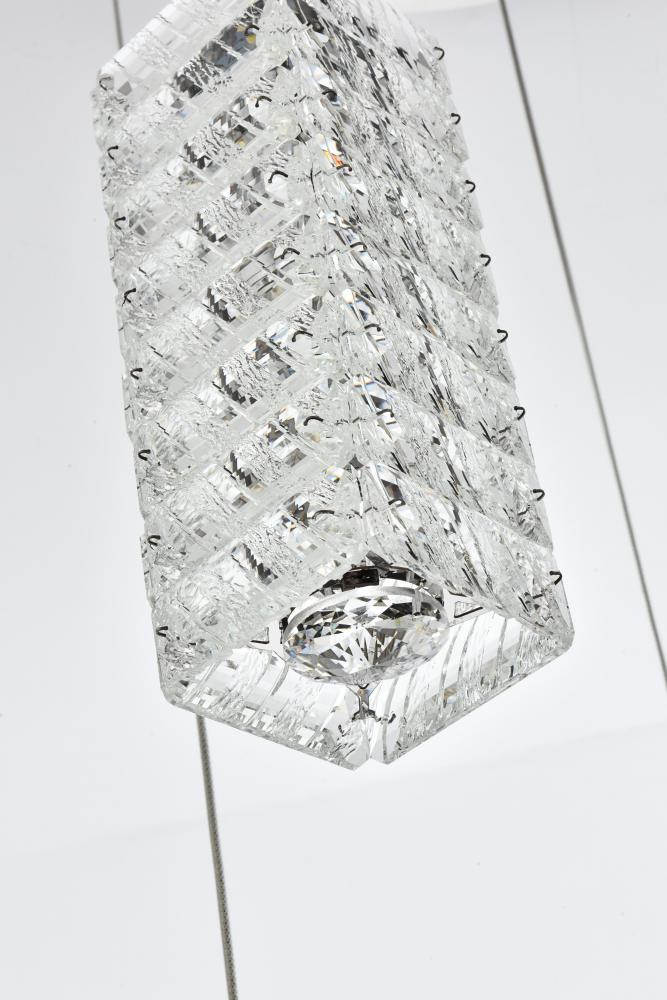 Elevate the ambiance of your space with this exquisite Crystal LED Pendant Light. Featuring a sleek four-sided rectangular shape, this pendant is adorned with clear crystals that resemble elegantly stacked ice. The addition of a round crystal diffuser at the bottom enhances the light's radiance, making it a focal point in any room. Transform your home with the Crystal LED Pendant Light, combining modern design with high functionality. Its sophisticated crystal design, adjustable lighting, and customizable hanging configurations make it a perfect addition to any contemporary space. Illuminate your home with style and elegance today.