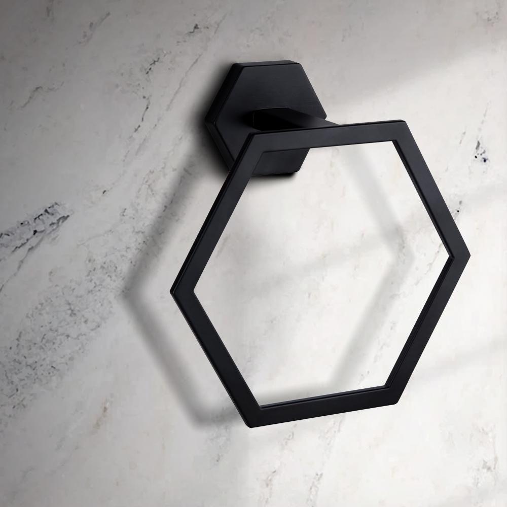 Elevate your bathroom to a sanctuary of sophistication with the ATALEE Towel Ring, a seamless blend of functionality and elegance. Crafted with precision, the matte black finish adds an air of contemporary chic to your space, offering a bold statement that is both timeless and modern. The unique geometric look of the ATALEE Towel Ring creates a visual harmony, a graceful holder for the fabric that comforts and dries your skin. Its dimensions, 7.125 inches in both width and height, coupled with a depth of 3 inches, ensure a prominent presence without overwhelming the delicate balance of your bathroom's design.