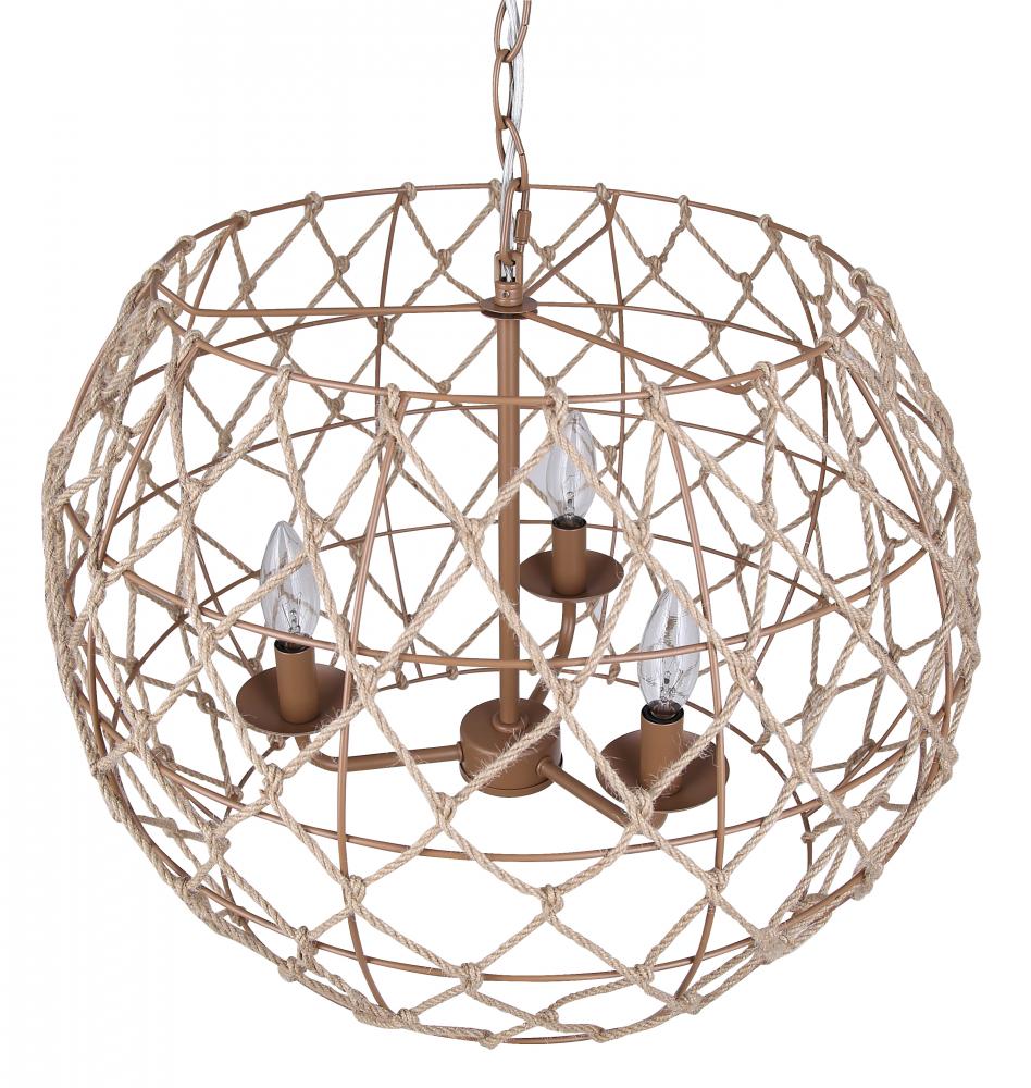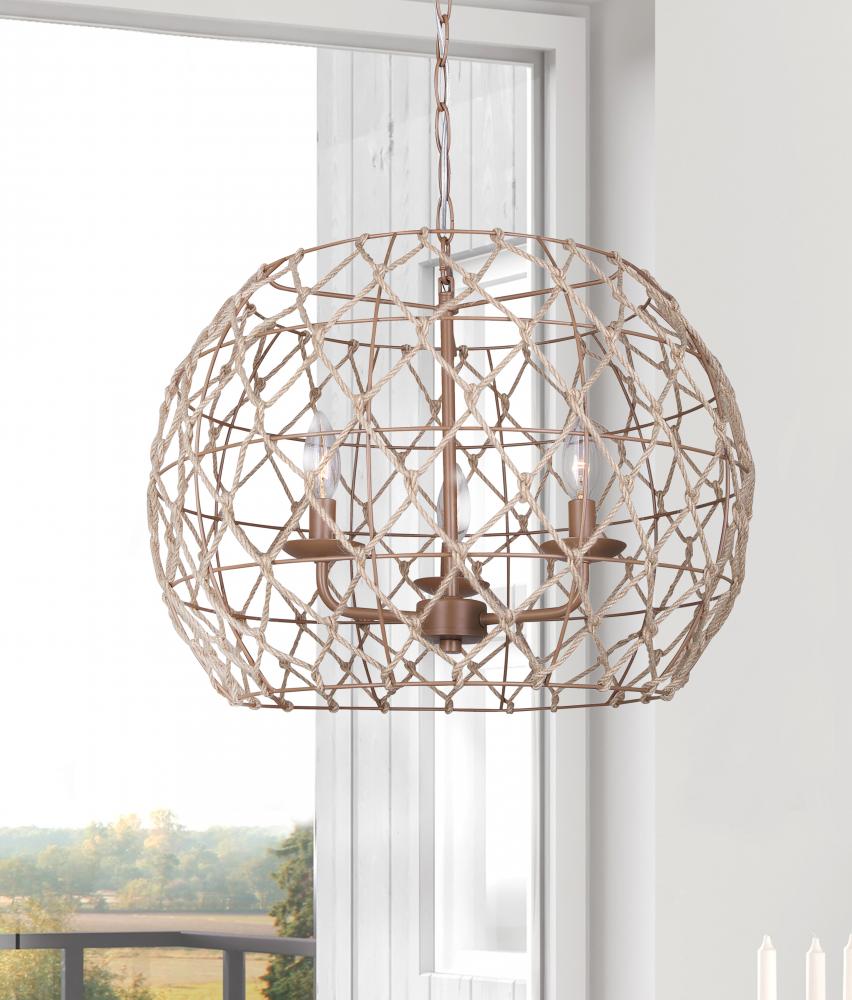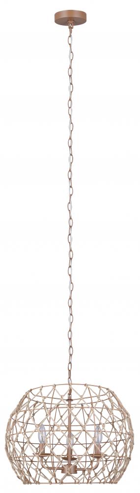 Aura 3 Light Pendant with Tan Finish and Natural Tan Rope Shade