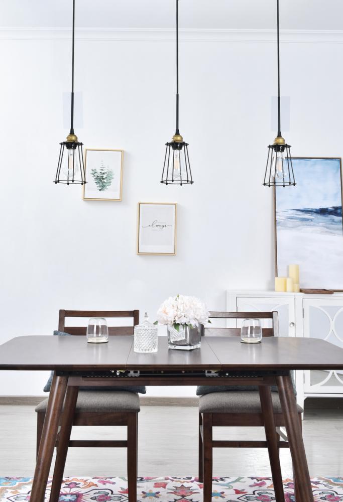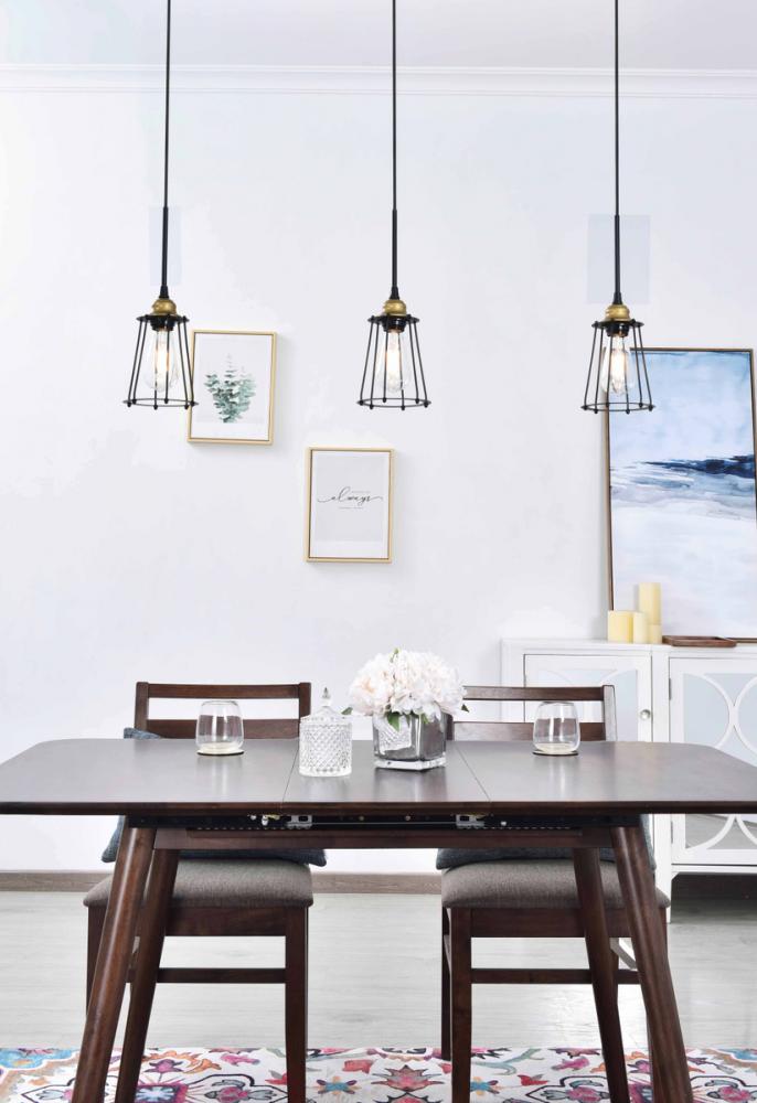 In all of its auspicious glory, the Auspice collection pendant lamp in a brass and black finish will shine its felicitous light for you. As the lights pass through the open shades, they dance around with the shadows and put a spotlight in your room. Whether it is in your entryway, living room, or dining room, this row of 3-light pendant will surely please you and your guests.