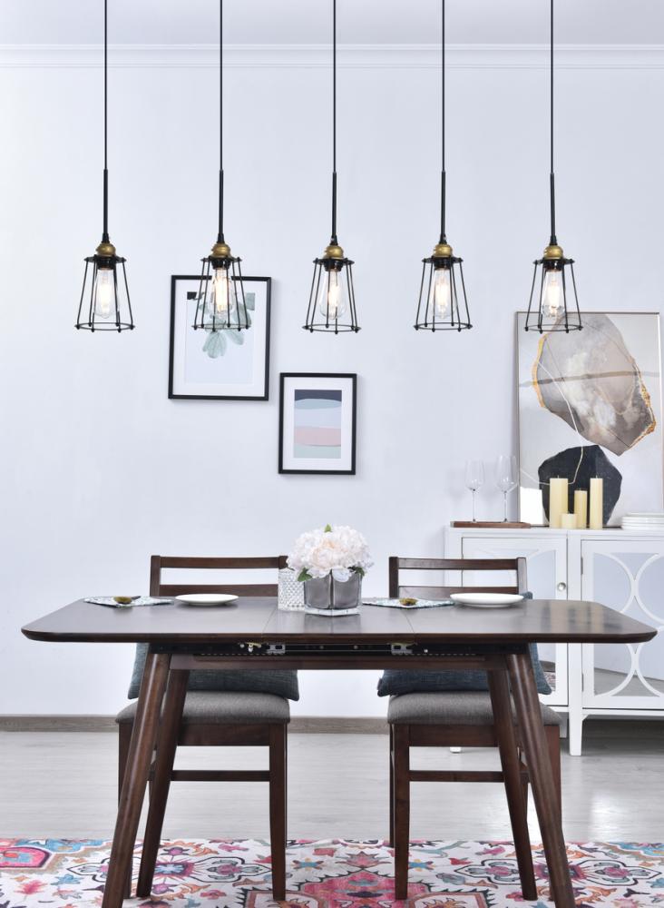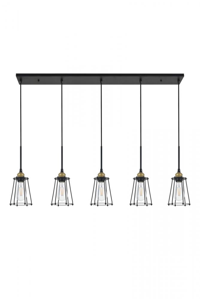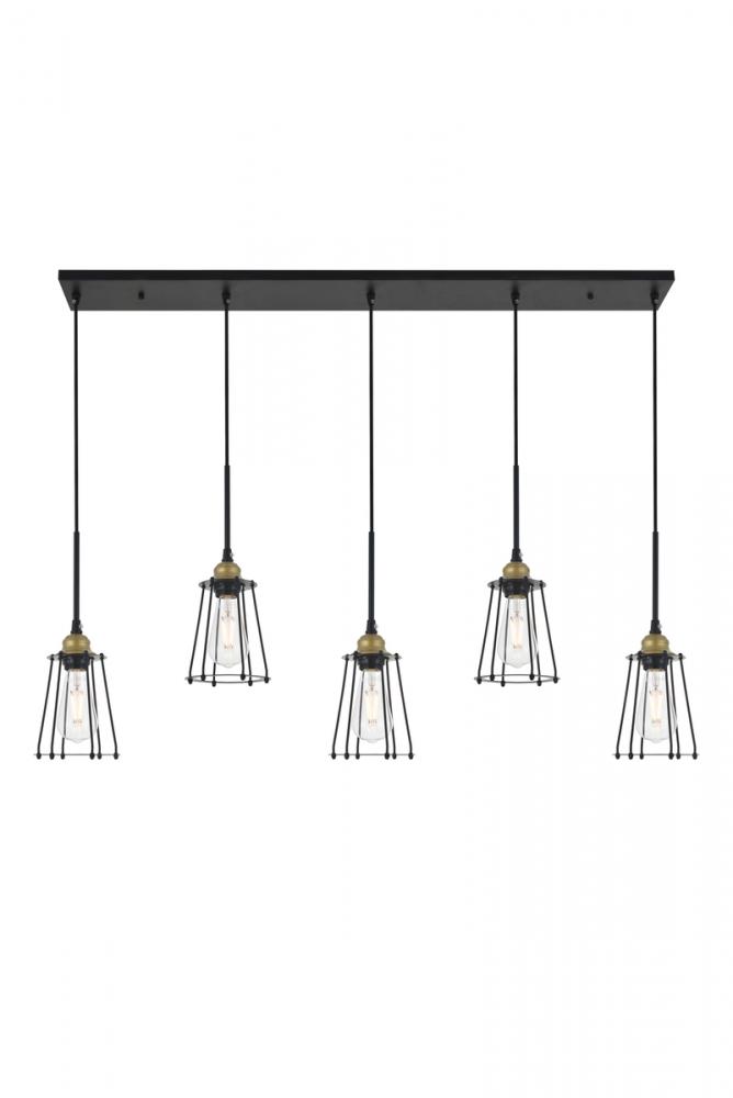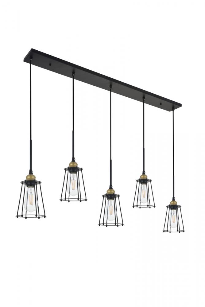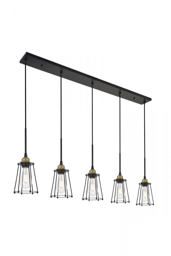 In all of its auspicious glory, the Auspice collection pendant lamp in a brass and black finish will shine its felicitous light for you. As the lights pass through the open shades, they dance around with the shadows and put a spotlight in your room. Whether it is in your entryway, living room, or dining room, this row of 5-light pendant will surely please you and your guests.
