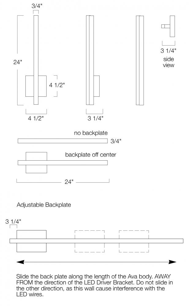 Featuring a slim line of light, this modern linear LED sconce mounts with a thin rectangular backplate that can be centered or slide off-center for a more asymmetrical look. Lengths include 24, 36,48 and 36 inches; mount the sconce horizontally or vertically for fresh, clean light in a variety of spaces.
