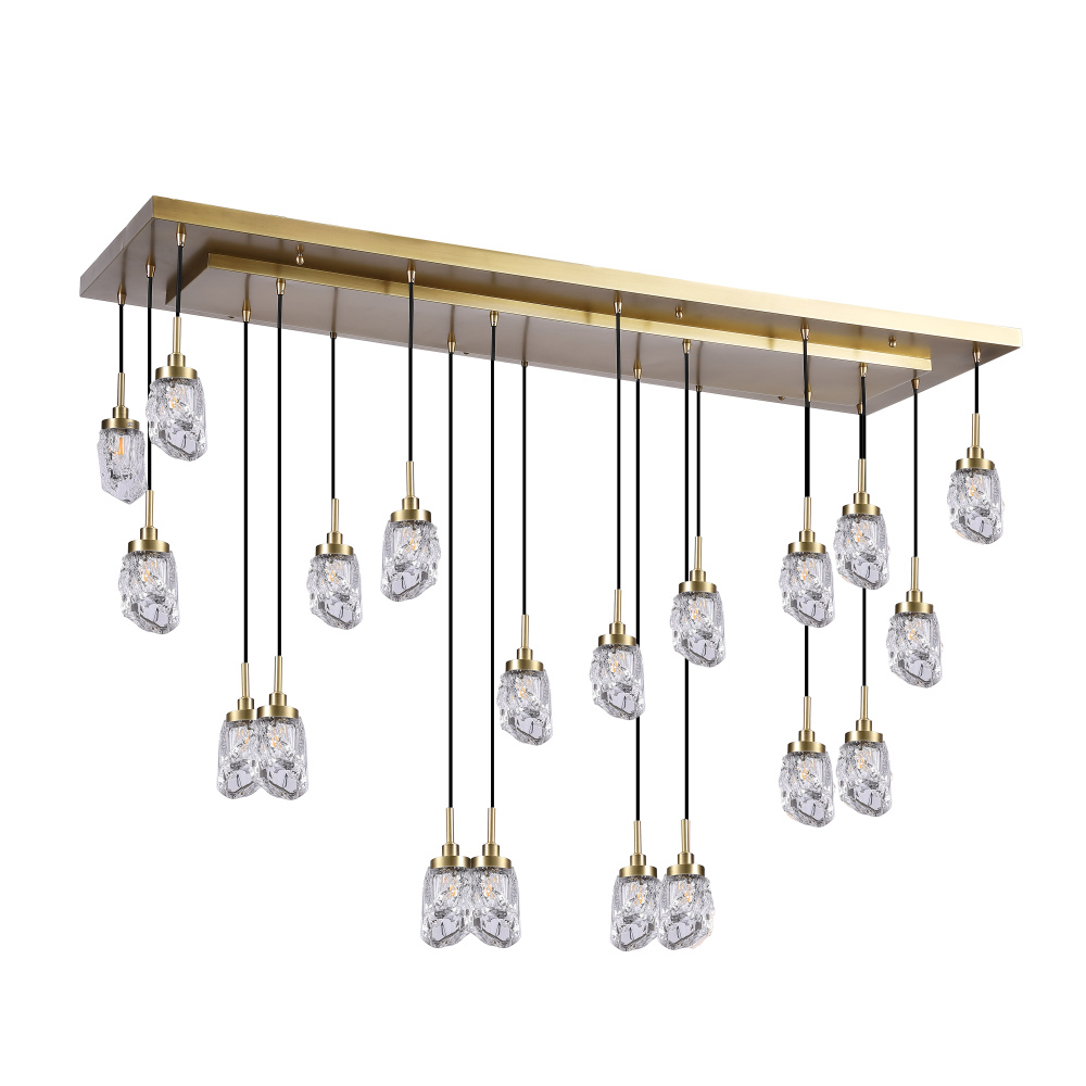 KCH1106-20BS Avola 20-light Ice-drop Rectangular Chandelier - Brass L20" W54" H128" Antique Brass 120 V 20LG9
