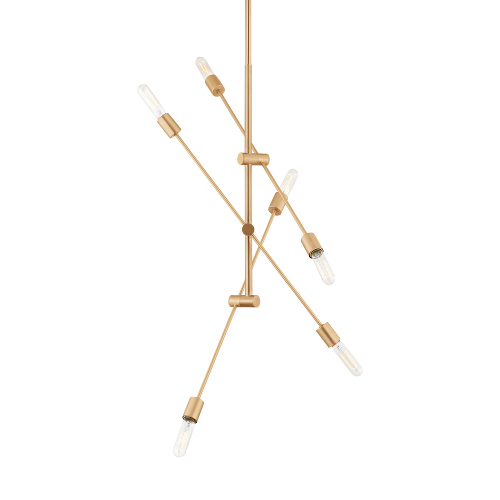 Axis is a simple and refined industrial design where form and function are the design elements. Fully articulating arms make this a truly versatile collection. The arms meet at fully pivotable mechanisms, arms can be adjusted before or after the fixture is installed, to fit a tall foyer or have a low and wide horizontal chandelier.
