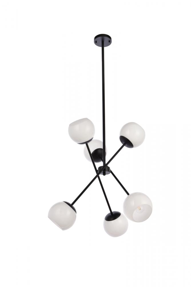 The multi-directional lines on this 6-light sputnik chandelier bring an architectural look over the dining room table or kitchen island. It has a circular canopy and an adjustable downrod to suit any space. The sleek, sputnik-inspired lines zigzagging in all directions freshen up any modern home. At the end of each rod, there is one glass shade with one candelabra-style bulb up to 60W (not included) that aims ambient light wherever you hang it. Best of all, this hardwired chandelier is compatible with a dimmer switch, allowing you to change up the lighting throughout the day.