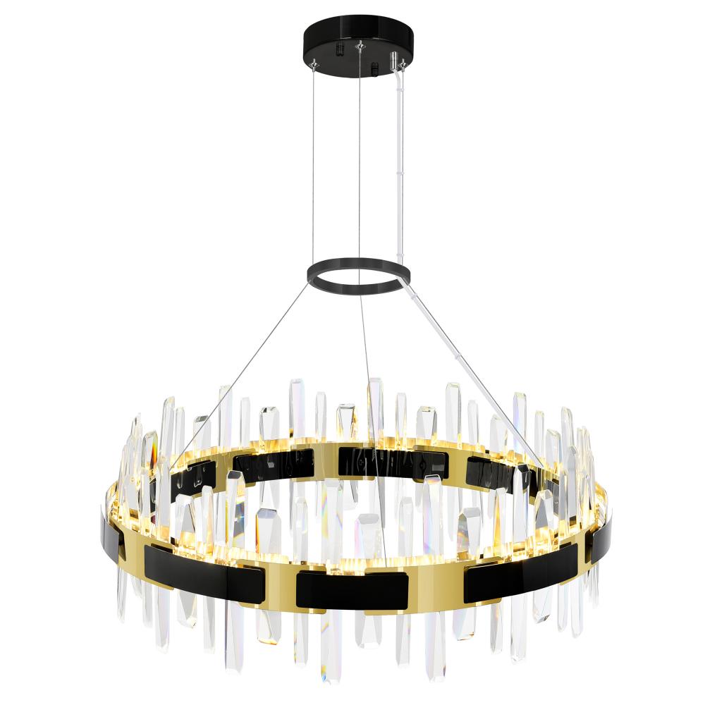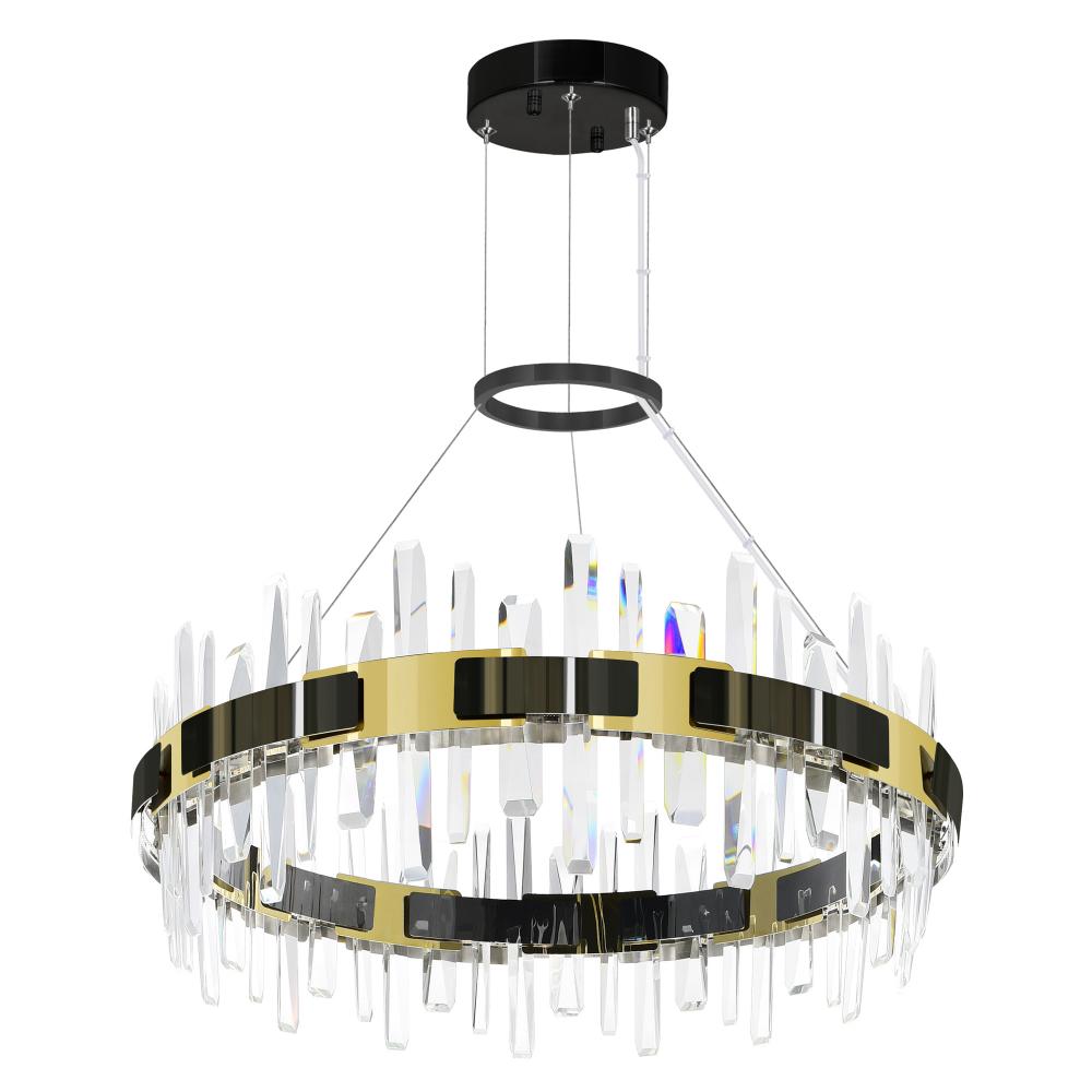 Grace your space with the elegance and sophistication of the Aya 32'' Integrated LED Chandelier in Pearl Black. With a wide 32-inch span and adjustable hanging height, this oversized fixture is designed to command attention without overwhelming your space. Whether installed above a long dining table, in a grand foyer, or over a kitchen island, this fixture's breathtaking form and integrated LED technology deliver brilliant illumination and timeless style. Finish: Pearl Black Fixture Width: 32" Hanging Height: Adjustable Light Source: Integrated LED Style: Modern / Glam