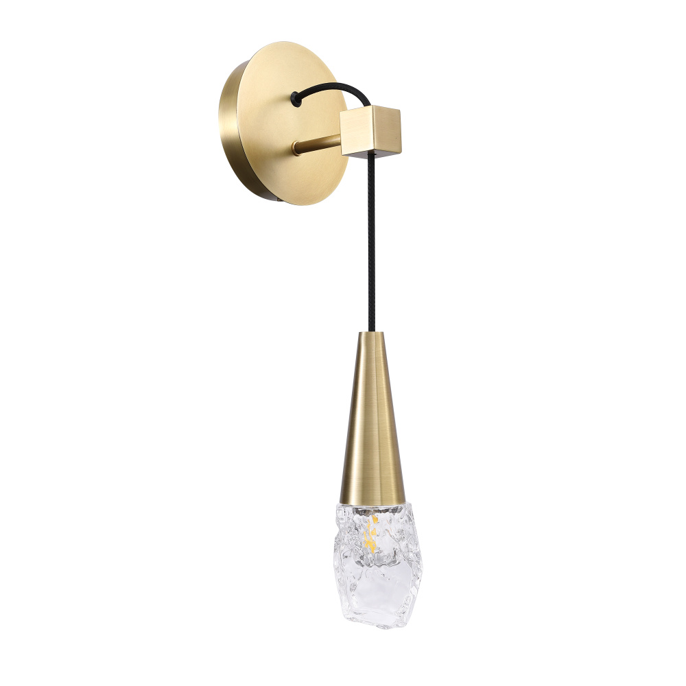 Elegantly suspended crystal facets establish a tranquil feeling in the Ayla Collection. Available in brass or bronze finish, the metal surface reflects a glowing sheen from ice-clear glass. This series combines industrial precision with the graceful touch of natural inspiration