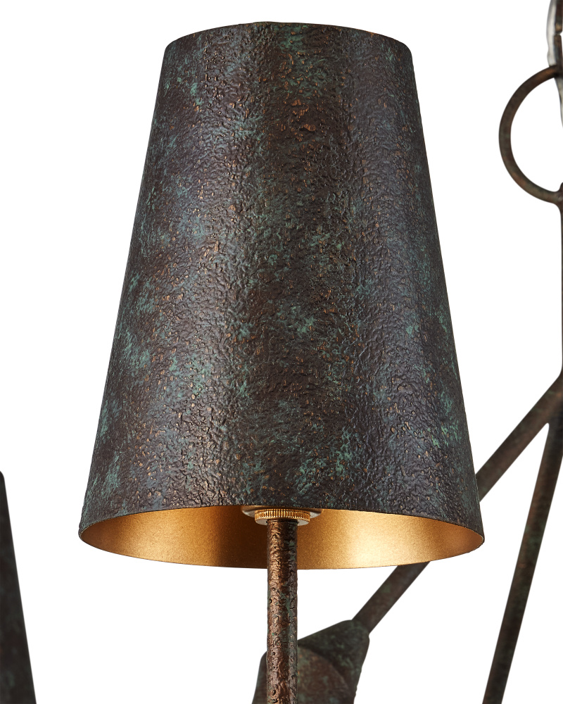 The Babylon Two-Tier Chandelier is formed from slender, curving stems of wrought iron in a contemporary gold leaf finish that have been shaped into an elegant floral silhouette. The tapering spikes are adorned with elongated green glass leaves, each hand-cut from recycled wine bottles, that look as if they are being stirred by a breeze. The edges are individually polished by hand and placed on the frame with metal pins that resemble the shapes of the glass pieces. There will be slight variations in color in the leaves on this dimmable 11-light chandelier. Adjustable from 33" to 101" with use of included chain/rod kit/cable. If your space calls for a longer drop, additional chain/rods/cable is available for purchase.