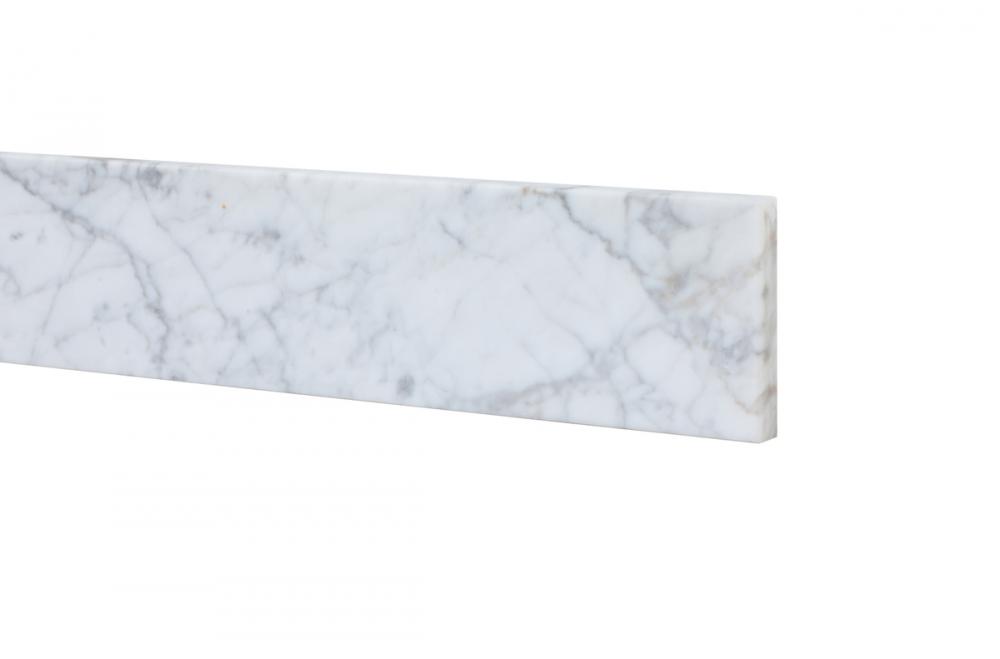 24 inch backsplash in carrara white designed to protect your bathroom walls from splashes and stains.