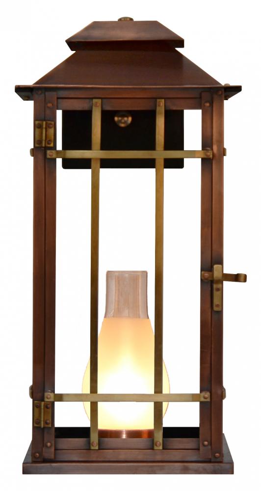 Size 18 Electric Copper Lantern, 2 candelabra base sockets, standard with Coach House Bars, with Hurricane Shade