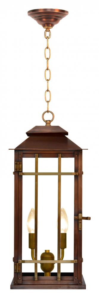 Size 22 Electric Copper Lantern, 2 candelabra base sockets, standard with Coach House Bars, with Chain Mount
