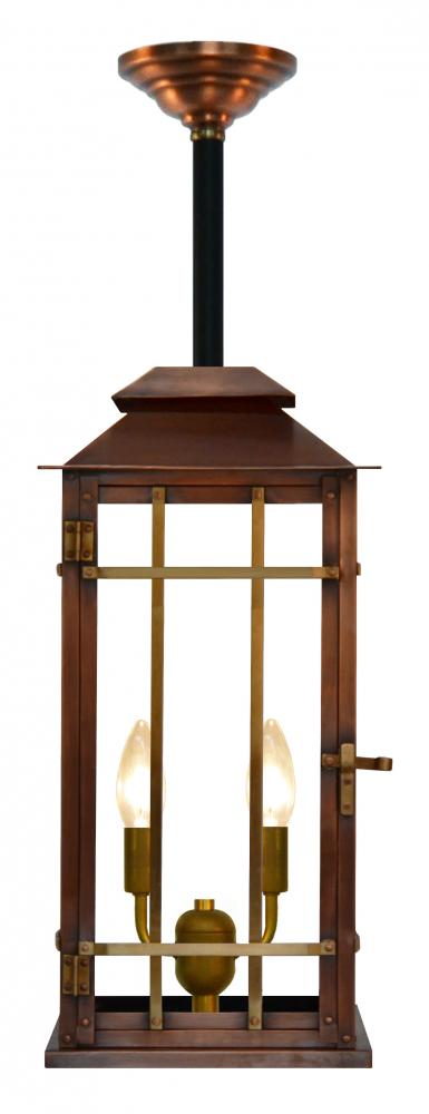 Size 22 Electric Copper Lantern, 2 candelabra base sockets, standard with Coach House Bars, with Stem Mount