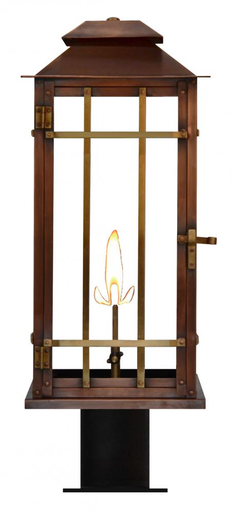 Size 22 Gas Copper Lantern, single gas burner, standard with Coach House Bars, with Post Fitter, Post Fitter Adaptor