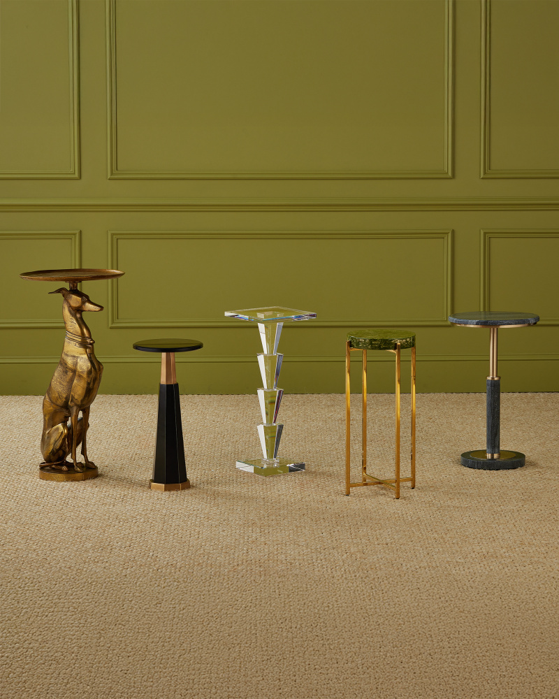 The Ballyregan Brass Accent Table is made of cast aluminum with a warm antique brass finish and tremendous winning style. The gold accent table is named after Ballyregan Bob, an iconic modern greyhound from England who set the world record for the most consecutive victories in professional dog races during the mid-1980s. The stippling on the surface of this piece represents the artistry of the highly skilled artisans in the foundry where it was made.