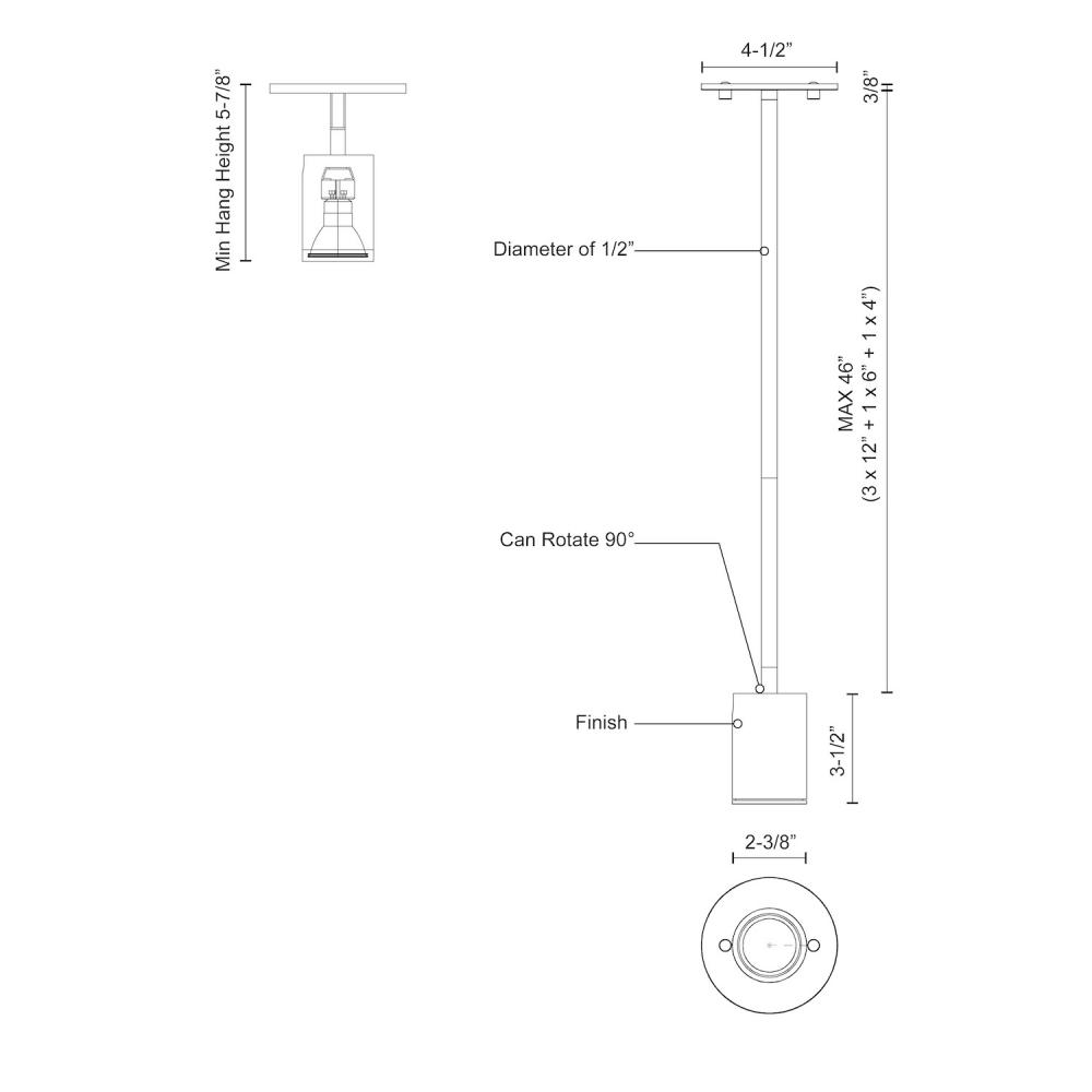 Cylindrical lamp head with recessed bulb socket. Circular attachment plate with vertical stem. Powder-coat finish. Adjustable directional light (90 Degrees).