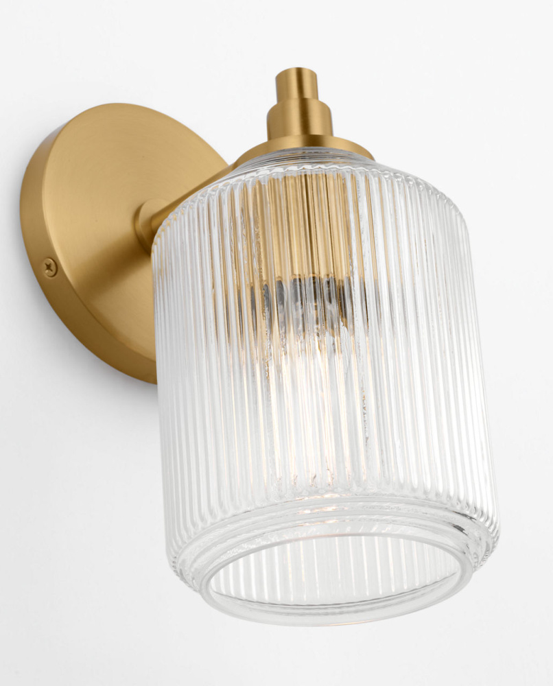 The Barstow 9" Vanity by Chapman & Myers captures the essence of vintage prismatic glass in a compact, refined form. Its ribbed clear shade features vertical and horizontal cuts that echo the precision of industrial craftsmanship, while the minimal metal frame keeps the silhouette clean and architectural. At 9", this fixture is ideal for smaller vanities or paired installations beside mirrors—where its sculptural clarity and polished detailing bring a sense of quiet sophistication to personal spaces.