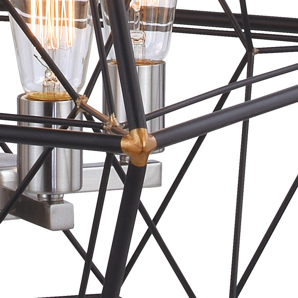 Showcasing a unique play on geometry, the Bartlett’s concentric shapes and open cage design pull you into its multiple layers of linear beauty. An oil rubbed bronze finish contrasts with touches of satin nickel and brass to highlight this industrial inspired collection. Combine that with vintage Edison style filament bulbs to complete the look. Height is adjustable with the included down rods; compatible with sloped ceilings. This pendant is ideal for kitchens, dining areas, stairways, and foyers.