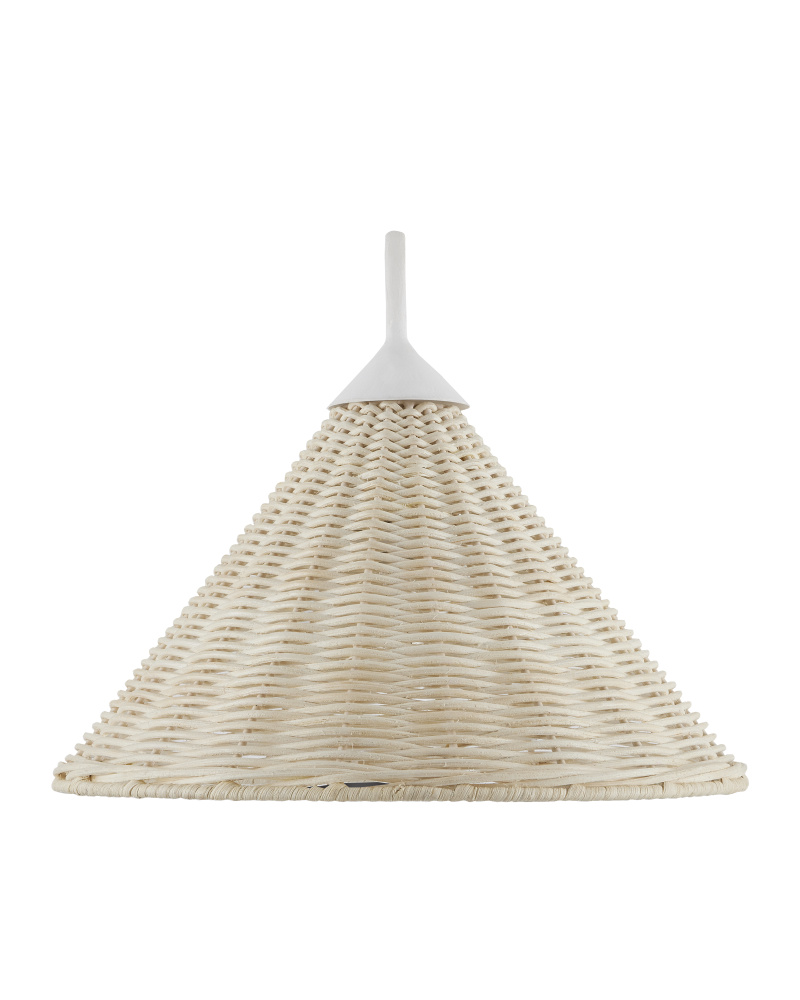 Woven natural arurog reeds create the elemental shade of the Basket White Swing-Arm Wall Sconce. The wrought iron frame and wall plate in a gesso white finish are simple in their design to make this rattan wall sconce perfect for casually chic interiors. Though the bleached white shade reads as seamless to the design, affixed as it is to a smaller flare perfectly in sync with its shape, there is a warmth to it due to the barely discernable natural material from which it is made. This forms a subtle contrast to the crisp metal.
