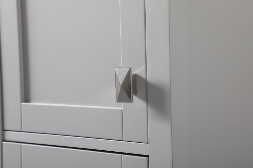 Featuring a sophisticated upper and lower door design, crown molding top, shaker legs, and zinc brushed nickel finish rectangle door knobs, our linen storage cabinet adds a touch of timeless elegance to your space.