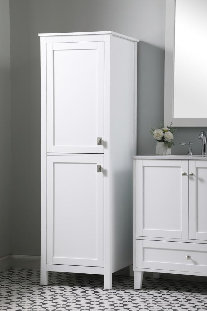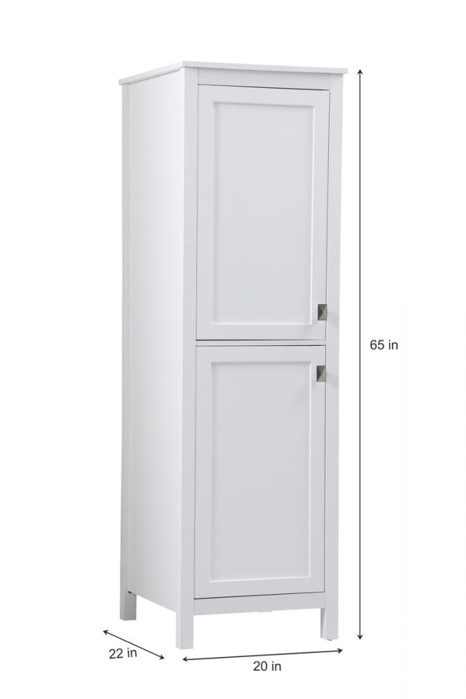 Discover enhanced storage possibilities with our linen storage cabinet, a perfect blend of compact design and ample space, measuring 20" W x 65" H x 22" D. Crafted from durable engineered wood, this cabinet features a sophisticated design including upper and lower doors, crown molding, shaker legs, and zinc hardware, exuding timeless elegance. The top and bottom cabinets equipped with adjustable shelves provide substantial room for toiletries, towels, and more. Experience versatility, convenience, and tranquility with soft-close doors and two adjustable shelves. Arriving fully assembled, it streamlines setup, while various finishes and sizes seamlessly integrate with our bathroom vanity collection.