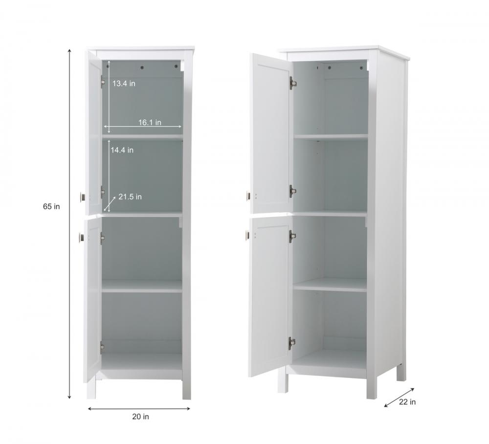 Measuring 20" W x 65" H x 22" D, our linen storage cabinet is compact enough to fit into various spaces while offering substantial storage capacity.