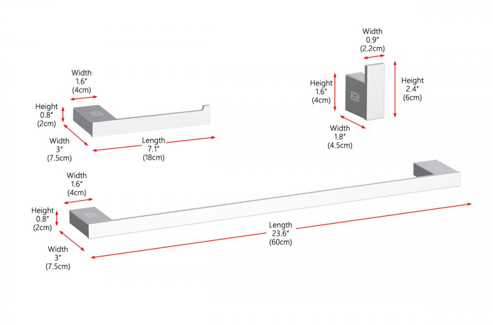 Introducing our Bathroom Hardware Set, available in a range of stunning finishes including brushed gold, brushed nickel, Chrome, and Matte Black. This comprehensive set is designed to elevate your bathroom, providing a well-organized and stylish space. It includes a 23.6" long towel bar, a 7.1" long toilet paper holder, and a practical 2.4" towel/robe hook, ensuring all your bathroom needs are met. Crafted from high-quality stainless steel, our hardware set not only adds a touch of luxury to your bathroom but also guarantees unrivaled durability. Stainless steel's inherent resistance to corrosion, stains, rust, and scratches ensures that your bathroom maintains its stunning appearance, just as it did on installation day. The open-ended design of the toilet paper holder simplifies roll replacement, offering both convenience and practicality. Installation is a breeze, with all the required mounting hardware included in the package, making it a straightforward and hassle-free DIY project. Each item is meticulously designed for easy wall-mounted installation, saving space and providing a secure solution for your bathroom. The stainless steel finish not only adds visual appeal but is also easy to maintain, eliminating the need for frequent scrubbing and polishing. The minimalist design of our hardware set ensures its versatility and adaptability to complement any bathroom decor, making it the ideal addition to your space. Invest in a bathroom that remains as stunning as the day you installed it, thanks to our hardware set's corrosion, stain, rust, and scratch resistance. Experience the perfect blend of style, convenience, and durability, complete with straightforward installation and effortless maintenance. Transform your bathroom with our versatile and practical Bathroom Hardware Set, providing a comprehensive solution for a more organized, stylish, and well-structured space.