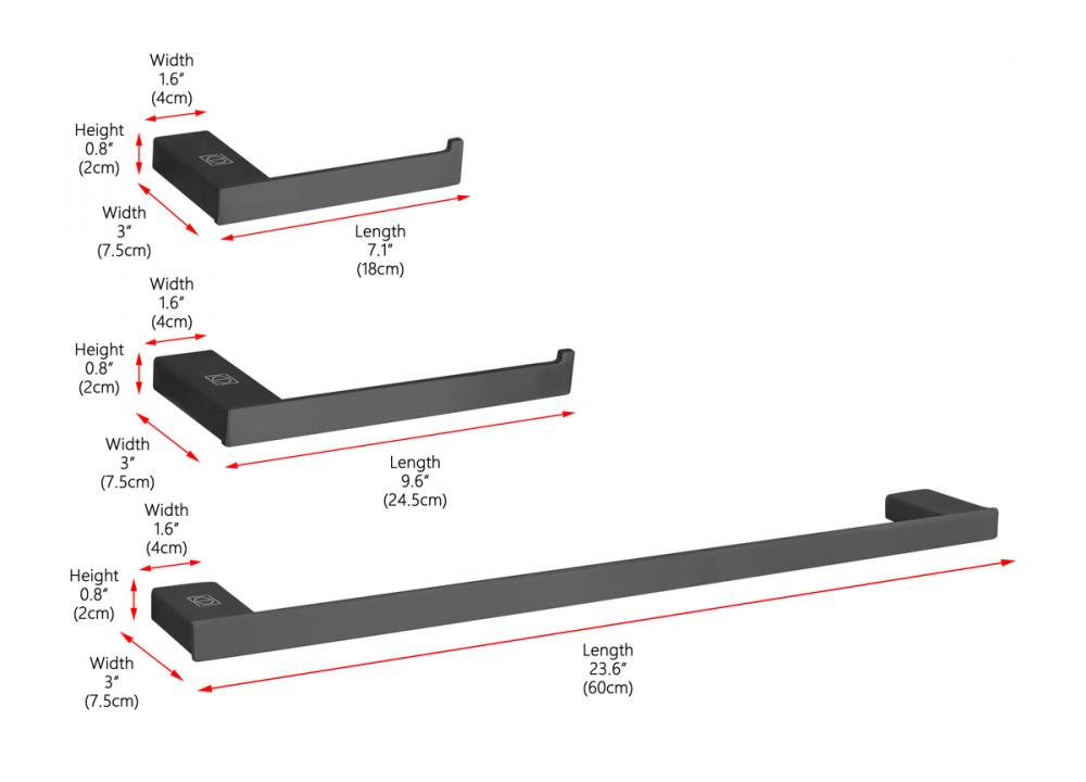 Upgrade your bathroom with our exclusive Bathroom Hardware Set, available in a range of stylish finishes: brushed gold, brushed nickel, Chrome, and Matte Black. This meticulously designed set offers the perfect combination of style and utility, featuring an impressive 23.6" long towel bar and a convenient 7.1" long toilet paper holder, effortlessly enhancing your bathroom's functionality and elegance. Crafted from high-quality stainless steel, our hardware set not only adds a touch of luxury to your bathroom but also ensures unrivaled durability. Stainless steel's inherent resistance to corrosion, stains, rust, and scratches guarantees that your bathroom remains as stunning as the day you installed it. The open-ended design of the toilet paper holder simplifies roll replacement, providing convenience and practicality. Installation is a breeze, thanks to the included mounting hardware, making it a straightforward DIY project for homeowners. Each item is thoughtfully designed for wall-mounted installation, saving space and ensuring a secure fit. The stainless steel finish is not only visually appealing but also easy to maintain, eliminating the need for frequent scrubbing and polishing. The minimalist design of our hardware set ensures its adaptability to any bathroom decor, making it the ideal addition to your space. Invest in a bathroom that retains its stunning appearance, thanks to our hardware set's corrosion, stain, rust, and scratch resistance. Experience the perfect combination of aesthetics and functionality, complete with easy installation and easy maintenance. Elevate your bathroom with our premium Bathroom Hardware Set, where style, convenience, and durability converge to transform your bathroom into a more elegant and efficient space.