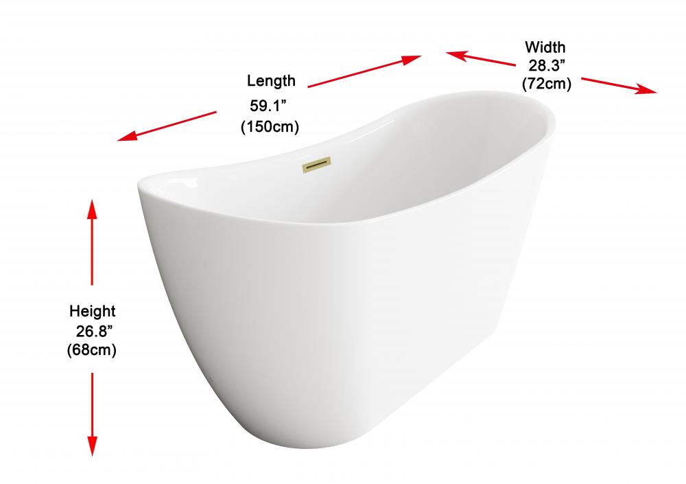 Elegant BT30459GW-BNK - Bathtub 59.1 x 28.3 x 26.7 GW with BNK drain kit