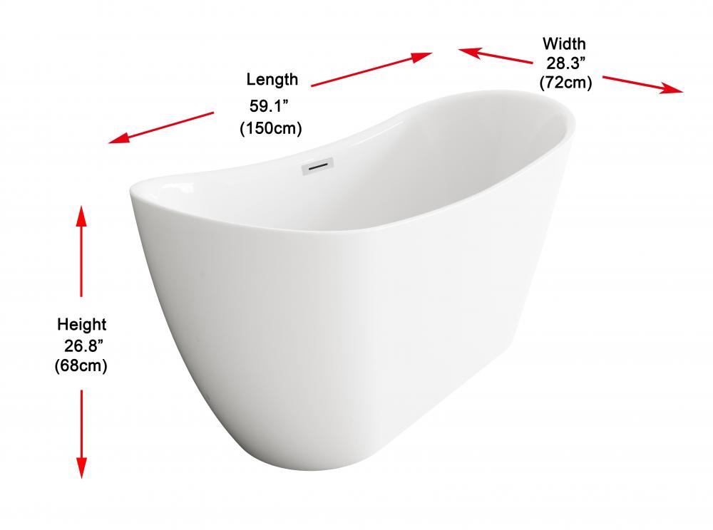 This freestanding tub offers a luxurious soaking experience with a 15-inch soaking depth and a spacious 56-gallon capacity.