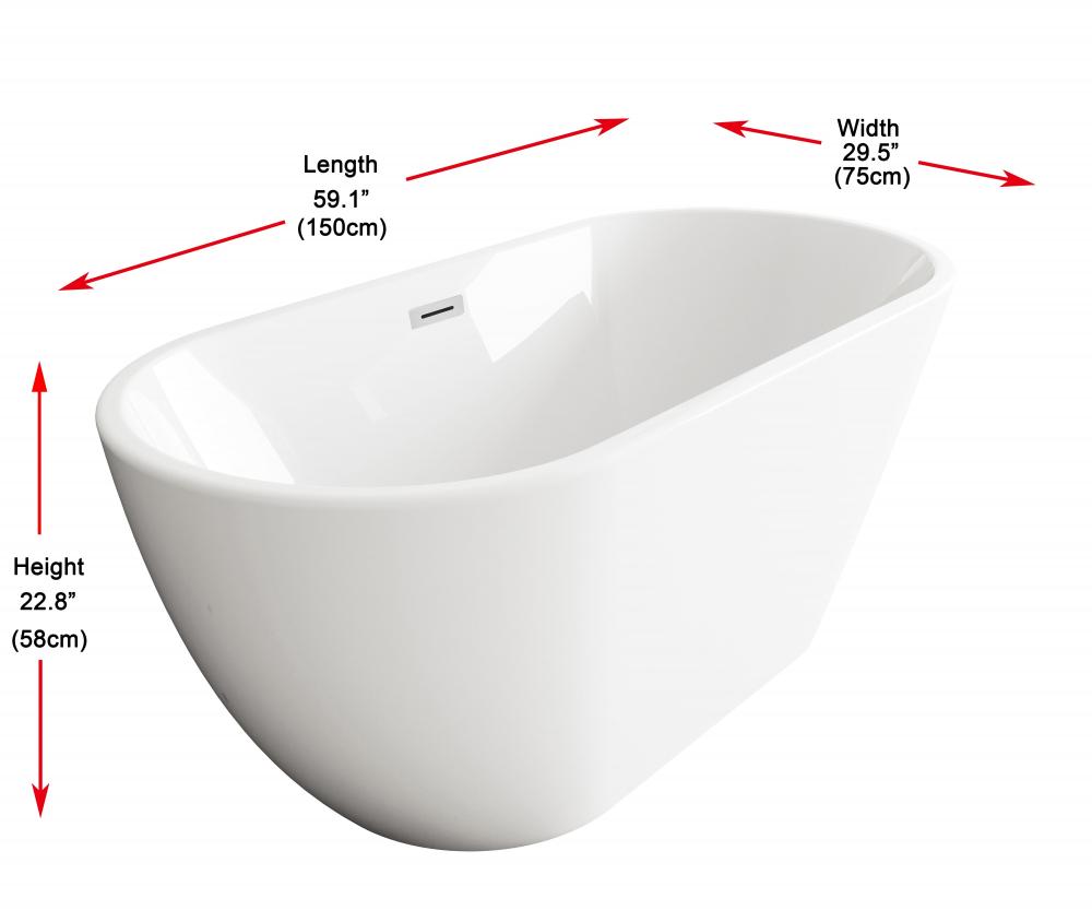 Elegant BT30359GW-MBK - Bathtub 59.1 x 29.5 x 23 GW with MBK drain kit