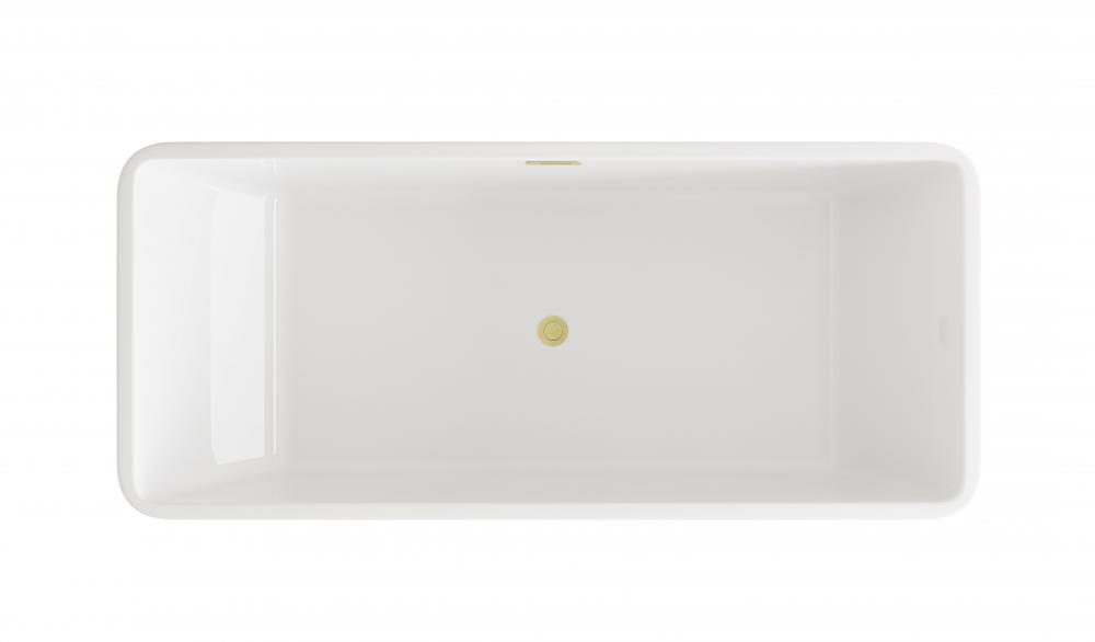 Immerse yourself in the ultimate relaxation experience with this elegant freestanding soaking bathtub. for a modern, minimalist aesthetic, the rectangular freestanding bathtub is the perfect choice. Its sharp, clean lines and structured form bring a contemporary edge to any bathroom. The smooth, rounded rim offers comfortable arm support, making it the ideal spot to unwind. Equipped with a pop-up drain and integrated overflow, this tub seamlessly combines convenience and style. with a generous capacity and 15-inch soaking depth, it's perfect for those looking to indulge in a deep, luxurious soak. Available with customizable drain trim finishes like brushed gold, matte black, and more, this bathtub is designed to fit your unique style. Durable and easy to install with adjustable foot levelers, this tub is both a statement piece and a functional retreat in your home.