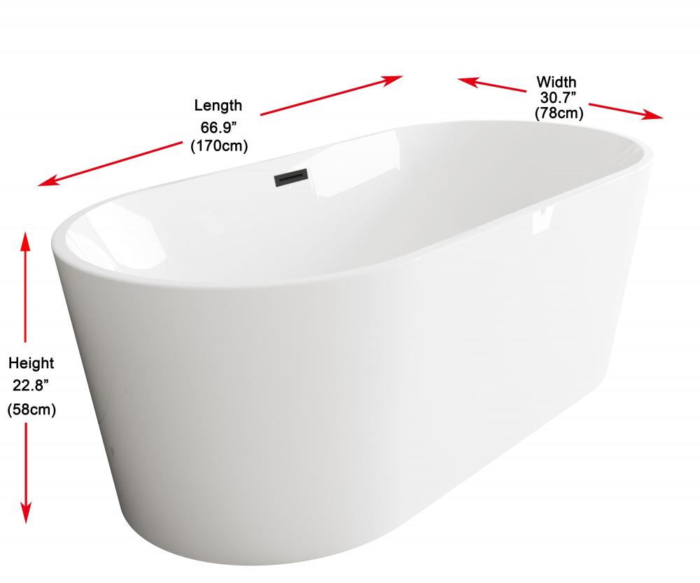 Bathtub 66.9 x 30.7 x 23 GW with MBK drain kit