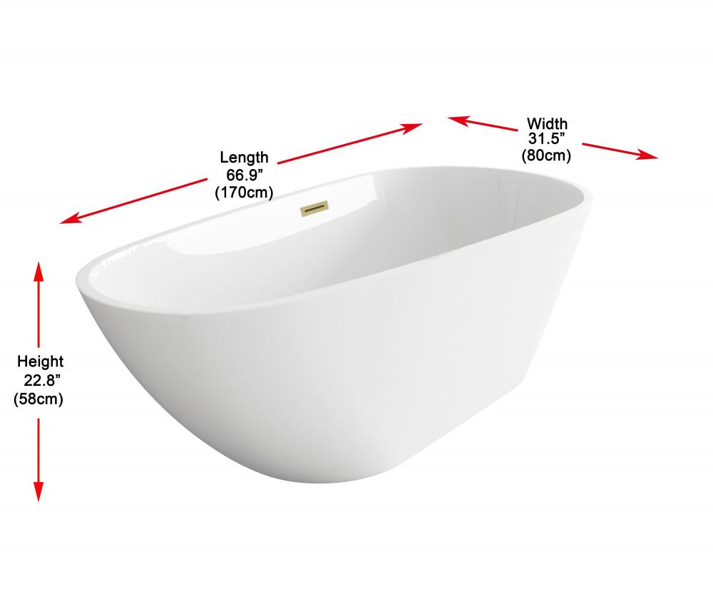 Bathtub 66.9 x 31.5 x 23 GW with BGD drain kit