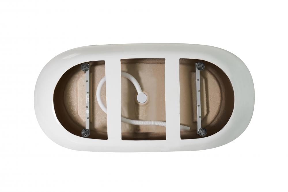 The foot leveler on a freestanding bathtub provides a simple yet effective solution for adjusting the height and ensuring stability on uneven surfaces.