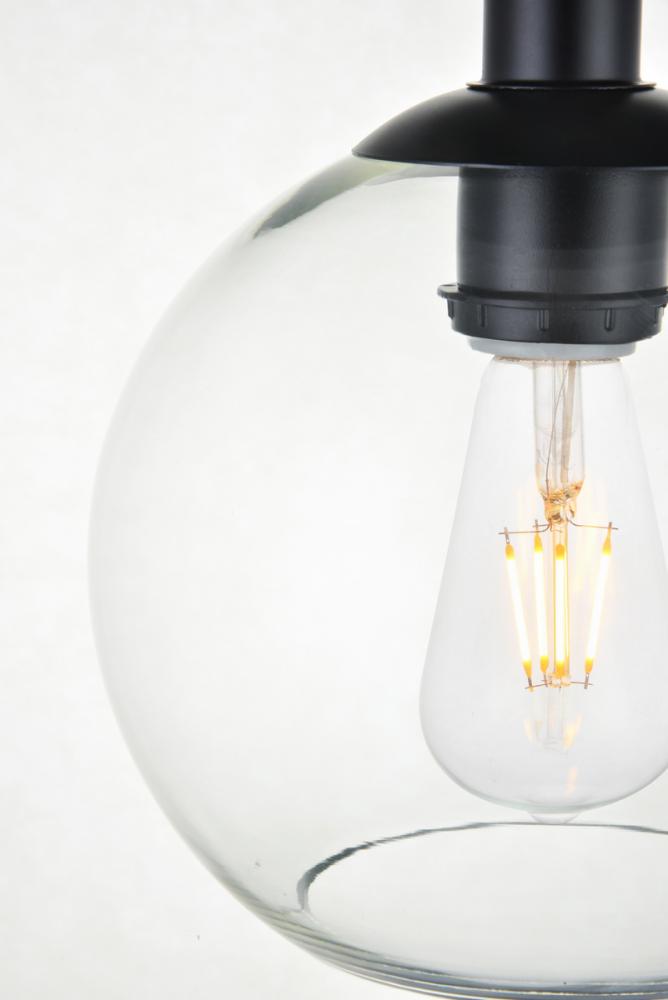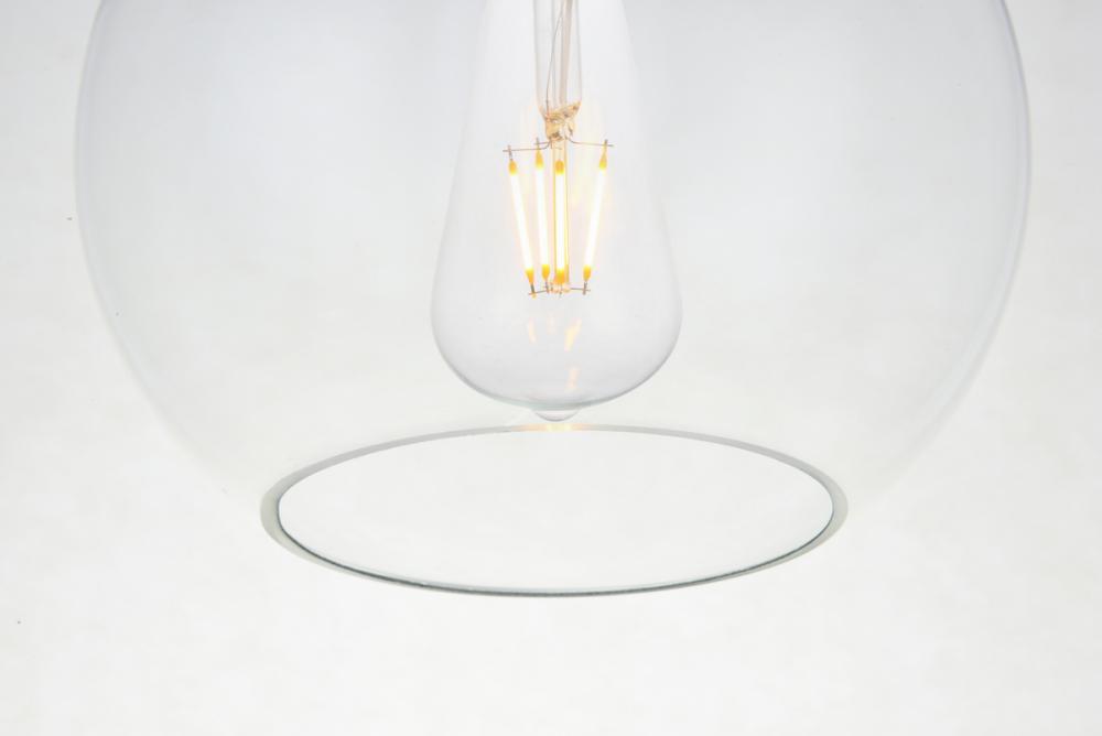 Feature 2: spherical clear glass shade with open center for easy bulb replacement
