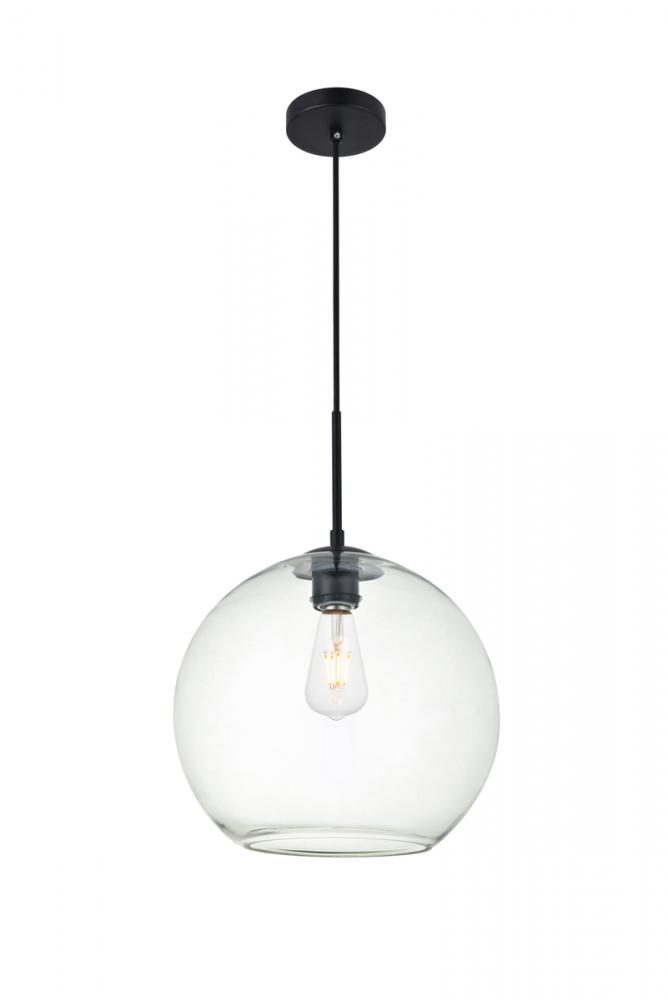 Refined style with a practical design, Baxter hanging pendant lamps bring cosmopolitan sophistication anywhere, especially to an entryway, office, bathroom, bedroom, or kitchen. The smooth iron frame features a disk-shaped canopy and comes in a black finish. An adjustable black cord allows you to vary the hanging height from 27 to 72 inches. The clear spherical glass shade remains open at the center to allow for effortless replacement of the filament-style bulb (not included). Living in the big city has never been this easy.