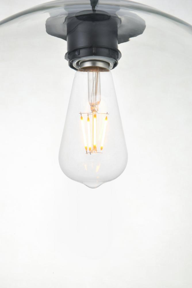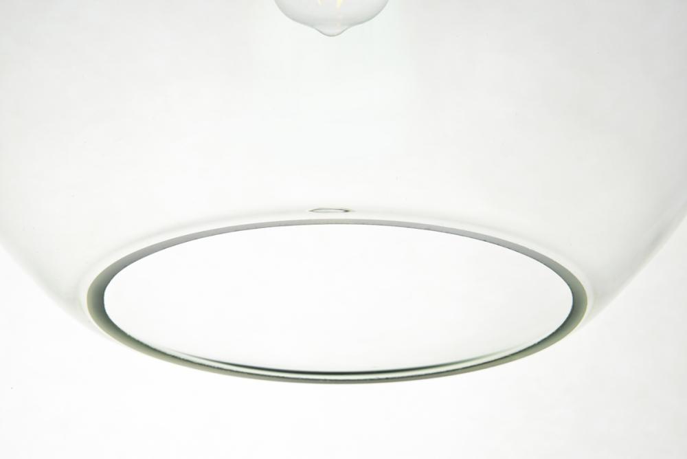 Feature 2: spherical clear glass shade with open center for easy bulb replacement