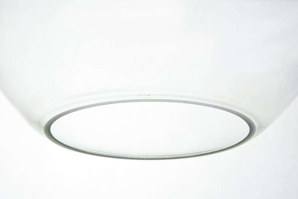 Feature 2: spherical clear glass shade with open center for easy bulb replacement