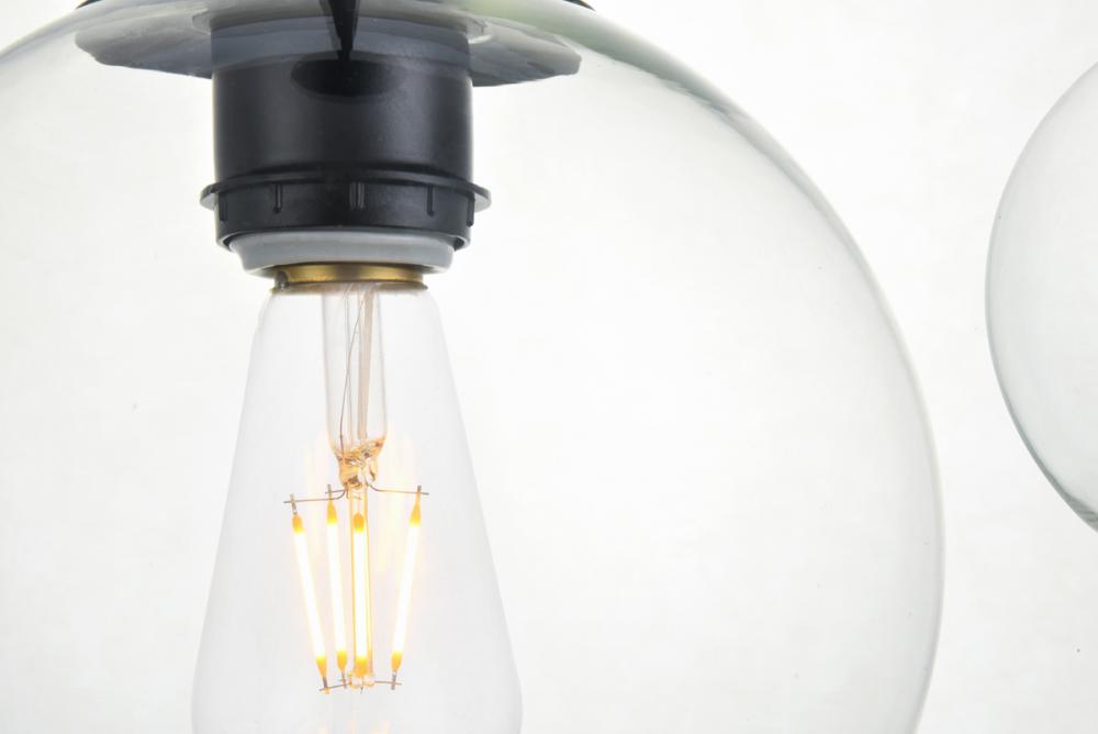 Feature 2: a row of three identical spherical clear glass shades with open center for easy bulb replacement; requires incandescent or led e26 bulbs (not included)