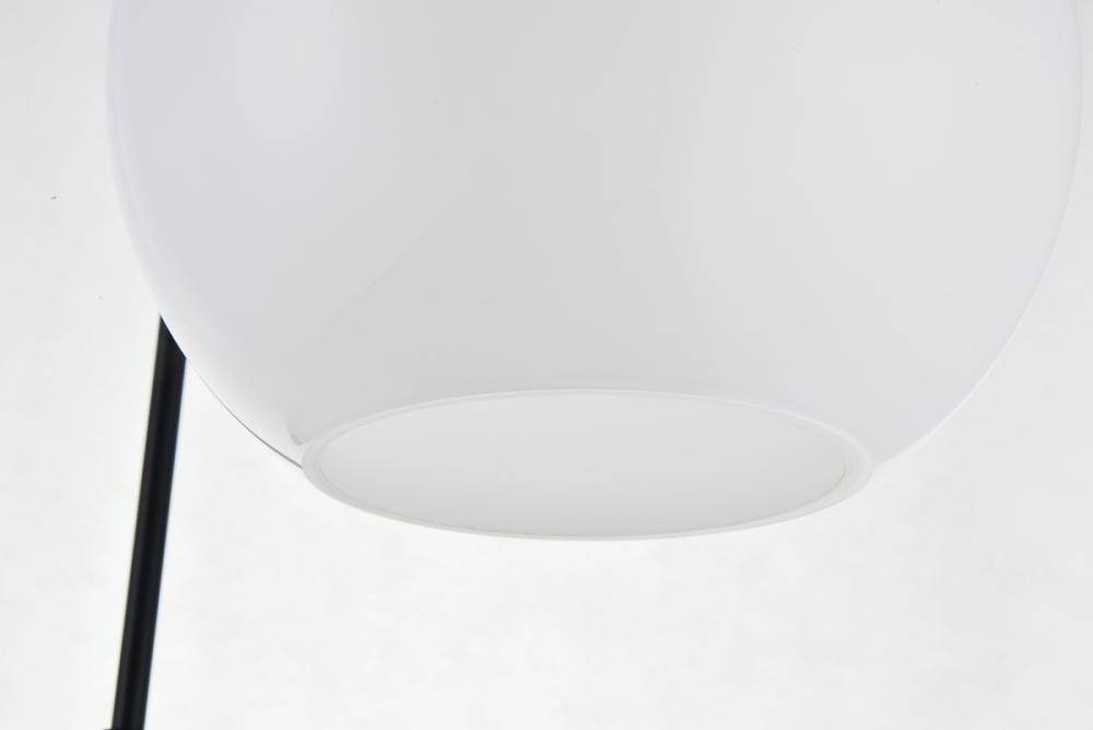 Feature 2: spherical frosted white glass shade with open center for easy bulb replacement