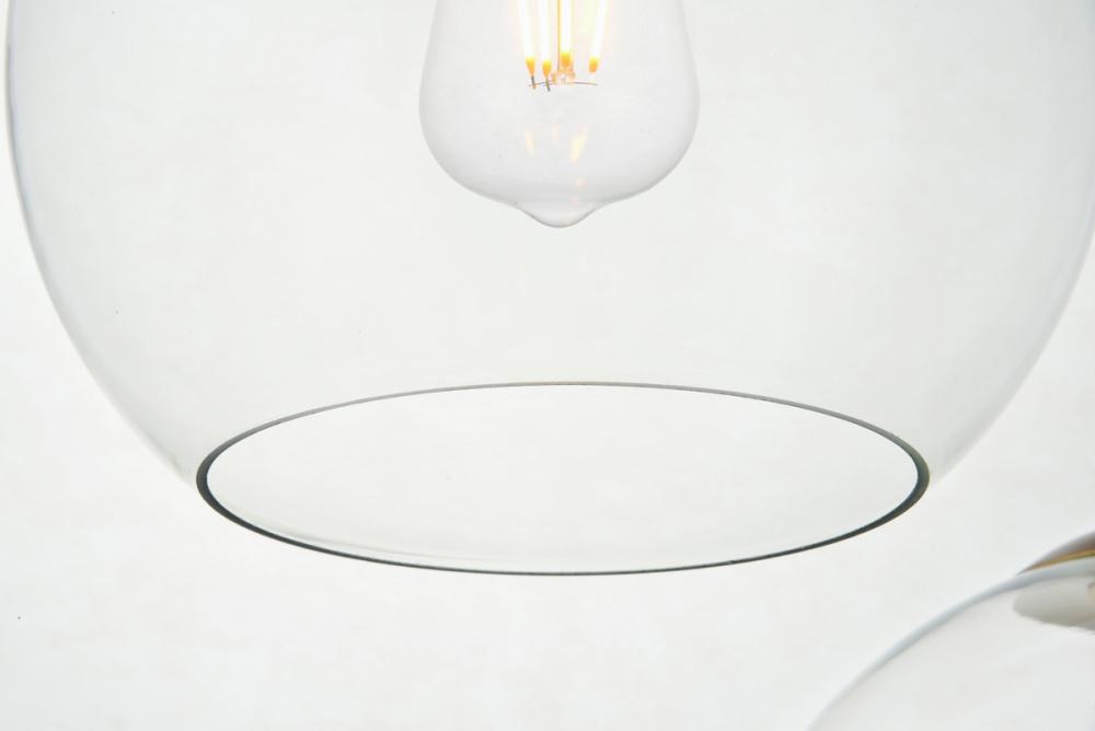 Feature 2: a row of three identical spherical clear glass shades with open center for easy bulb replacement; requires incandescent or led e26 bulbs (not included)