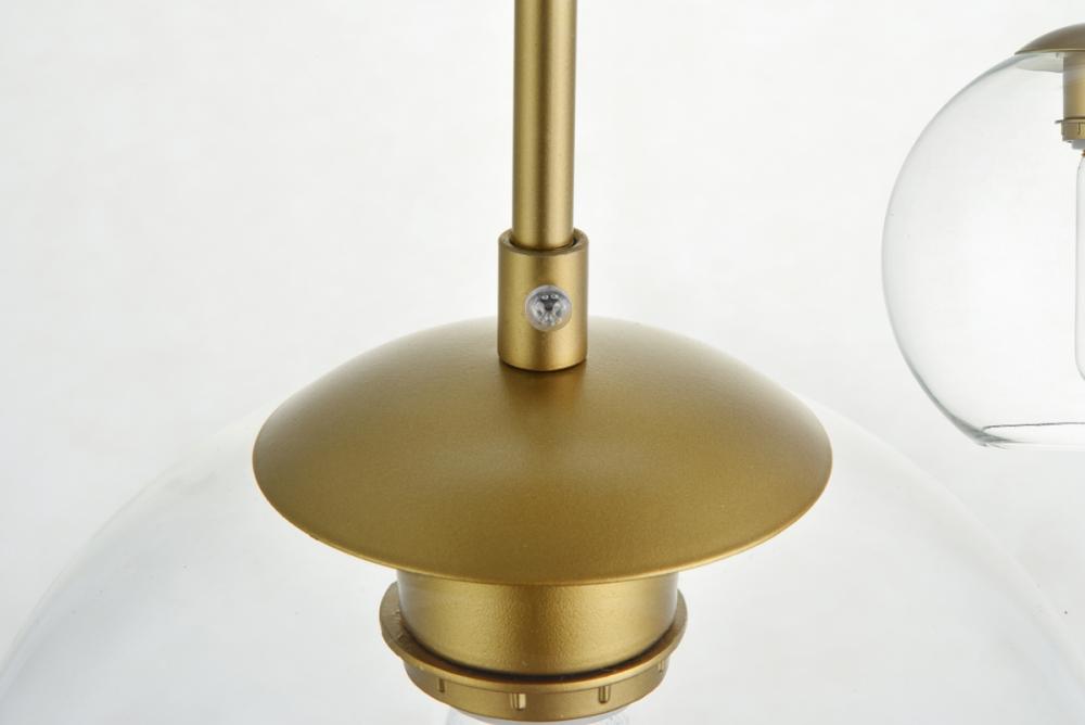 Refined style with a practical design, Baxter hanging pendant lamps bring cosmopolitan sophistication anywhere, especially to an entryway, office, bathroom, bedroom, or kitchen. The smooth iron frame features a rectangular canopy and comes in a brass finish. Adjustable black cords allow you to vary the hanging height from 14 to 87 inches. A row of three identical clear spherical glass shades remain open at the center to allow for effortless replacement of the filament-style bulbs (not included). Living in the big city has never been this easy.