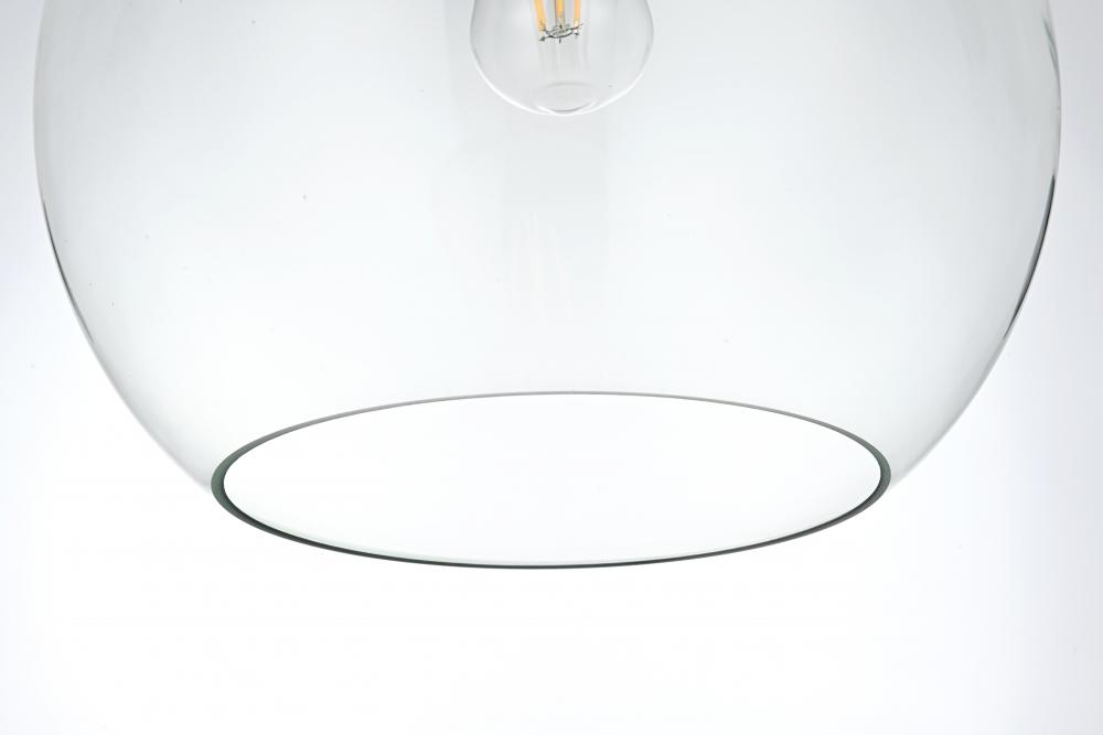 The Baxter hanging pendant light combines refined style with a practical design, adding cosmopolitan sophistication to any space—be it an entryway, hallway, bathroom, kitchen, or closet. The sleek iron frame, complete with a disk-shaped canopy, elegantly supports a clear spherical glass shade that stays open at the center, making bulb replacement effortless. Designed for those who love the look of big-city elegance, the Baxter pendant makes sophisticated living easy.