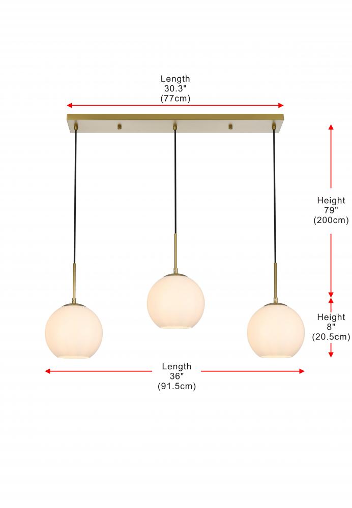 The Baxter hanging pendant light combines refined style with a practical design, adding cosmopolitan sophistication to any space—be it an entryway, hallway, bathroom, kitchen, or closet. The sleek iron frame, complete with a rectangular canopy, elegantly supports three frosted white spherical glass shade that stays open at the center, making bulb replacement effortless. Designed for those who love the look of big-city elegance, the Baxter pendant makes sophisticated living easy.