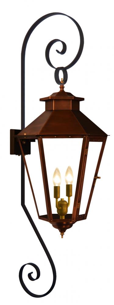 Size 61 Electric Copper Lantern, 2 candelabra base sockets, with Top Scroll, Bottom Scroll