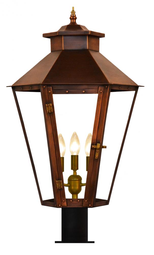 Size 64 Electric Copper Lantern, 3 candelabra base sockets, with Post Fitter, Post Fitter Adaptor
