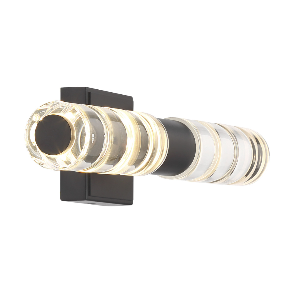 Highly textured batons of K9 crystal draw the eye and shine brightly in the Savoy House Beale LED wall sconce. The crystal takes center stage, held in an understated structure that is decorated in a chic Black Lustre finish. This edgy style is a perfect way to illuminate a bath vanity, piece of art, hallway, living room, bedside table or any other space you can imagine! Beale is 5" in height, 18" in width and extends 4.5" from the wall. It uses integrated LED light sources.