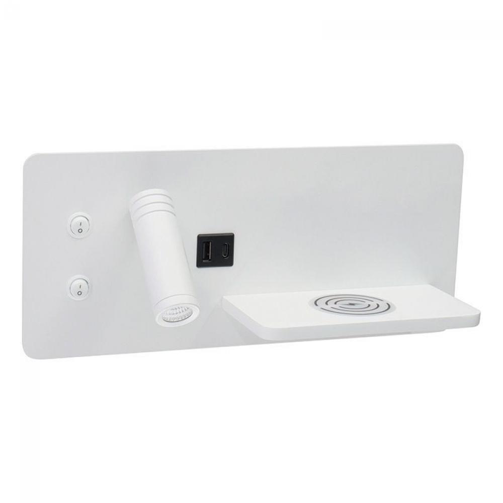 BEDSIDE READING LIGHT SURF. HORIZ. LEFT-SIDE 3W, 7W NIGHT LIGHT, USB2 USBC WIRELESS CHARGER, 30K, WH