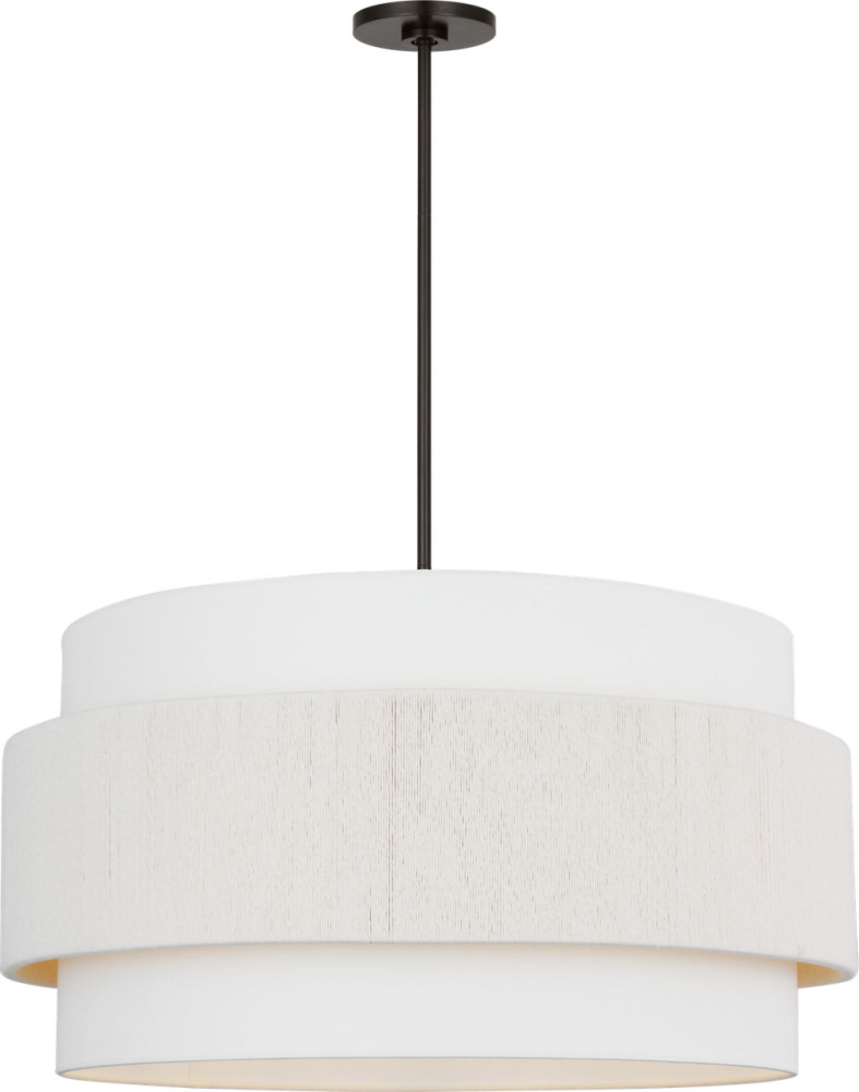The Belaro 30" Hanging Shade by Ellen DeGeneres expands the collection’s tactile sophistication into a larger, more commanding form. Defined by its modern silhouette, soft sculpted materials, and the interplay of fabric wrap and linen drum shade, this fixture embodies DeGeneres’ approach to design—organic, refined, and unmistakably modern. The 30" profile is ideal for living rooms, dining rooms, foyers, and primary bedrooms, where its graceful proportions and layered textures create a focal point that is both inviting and architecturally elegant.